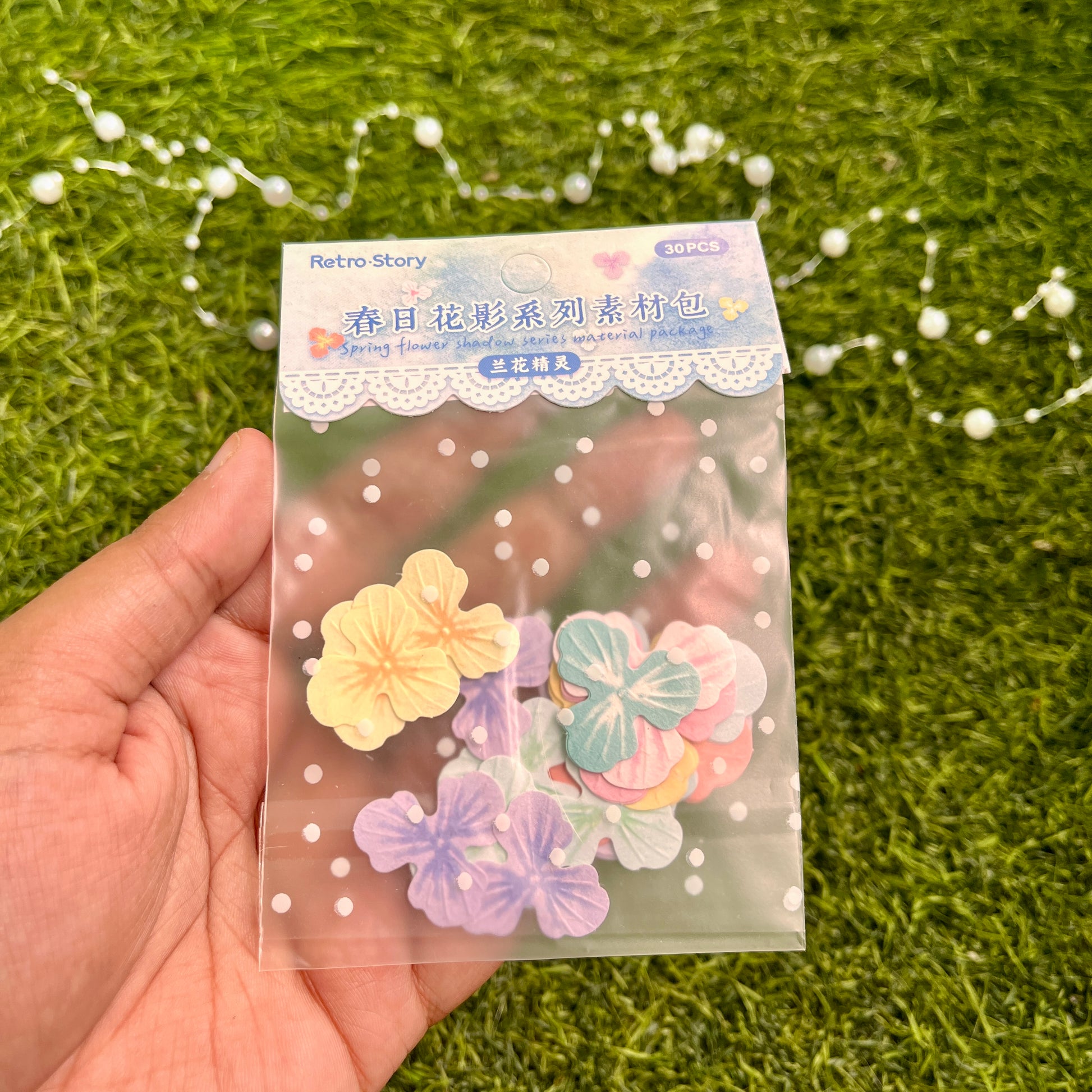 30pcs/pack Spring Flower Shadow Series Handbook Decoration Material Pack