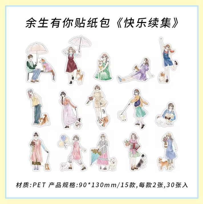 Transform your scrapbooking with our 30pcs The rest of your life series Character PET sticker pack! Add a touch of personality to your memories with our high-quality stickers. Elevate your crafting experience and make every page stand out with these vibrant and unique designs. Start creating unforgettable moments now!