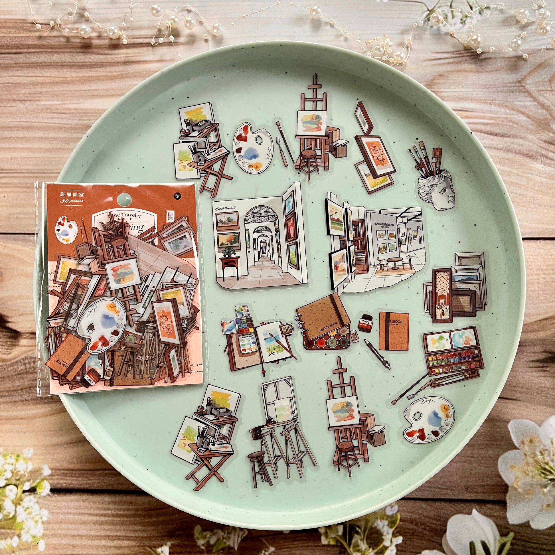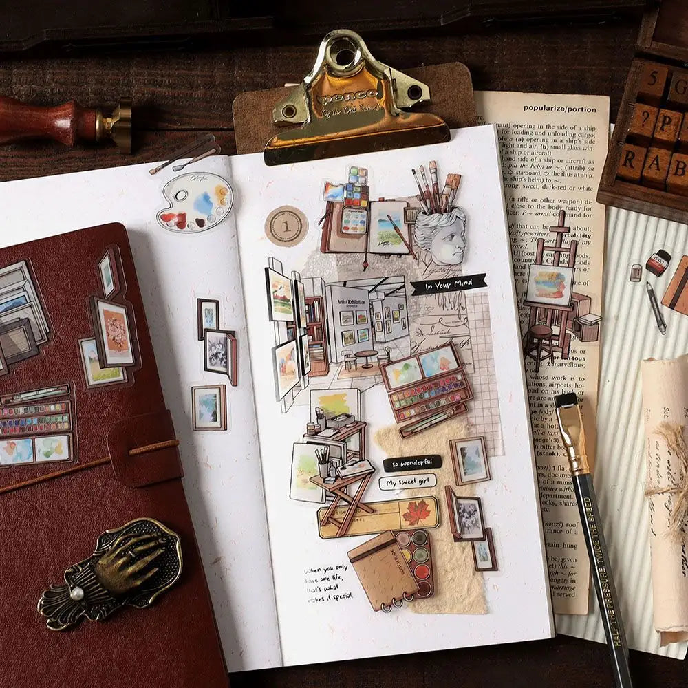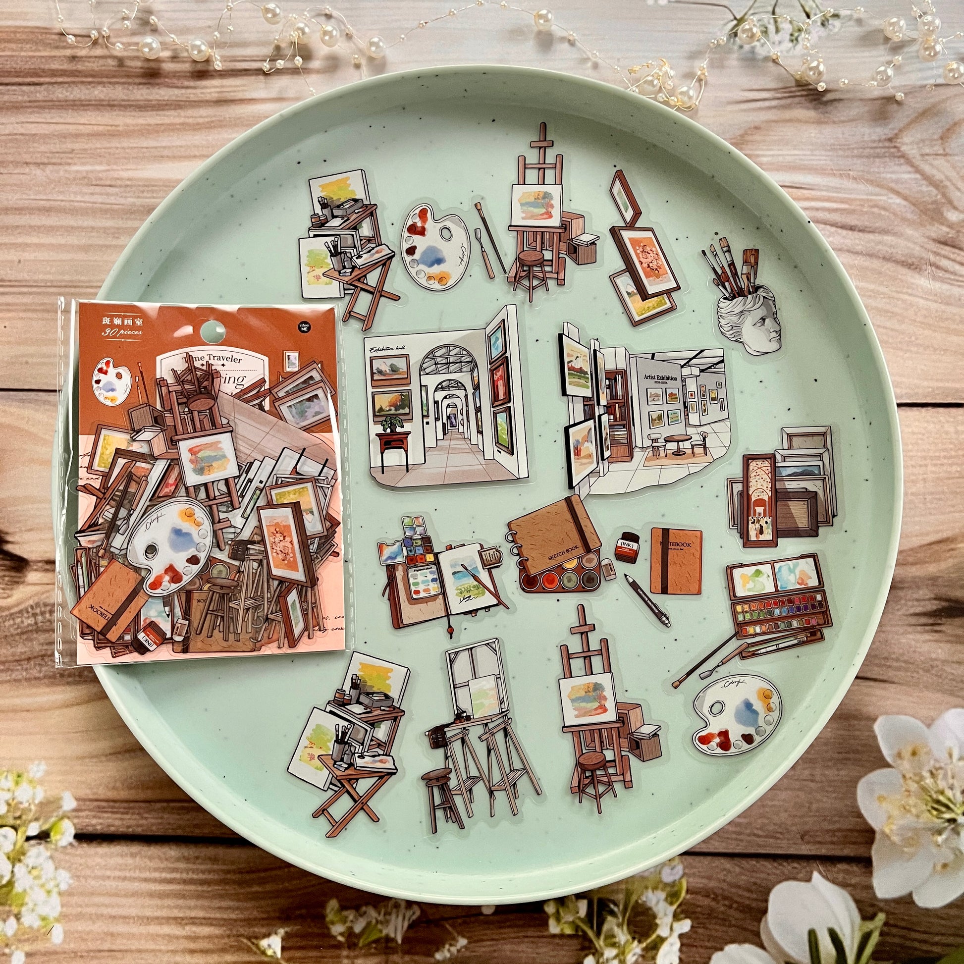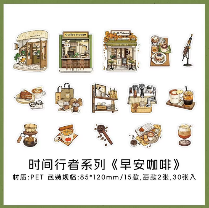 Introducing our 30pcs Timewalker Series Light Retro Decoration Material Pet stickers! Perfect for journaling and scrapbooking, these stickers feature daily life objects in a retro style. Add a touch of nostalgia and creativity to your daily life with these high-quality and unique stickers.