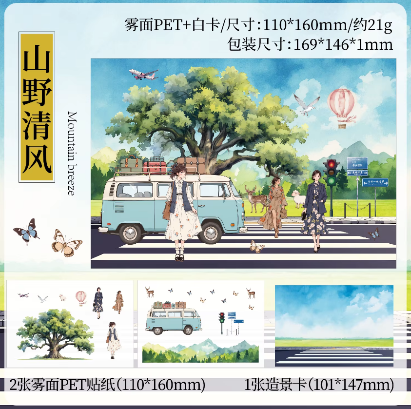 3pcs/pack Long Holiday Matte PET Landscape Stickers