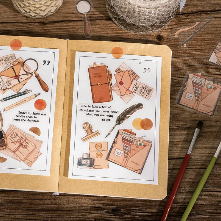 40 pcs Vintage PET Stickers Retro Coffee Scrapbooking Daily Stickers