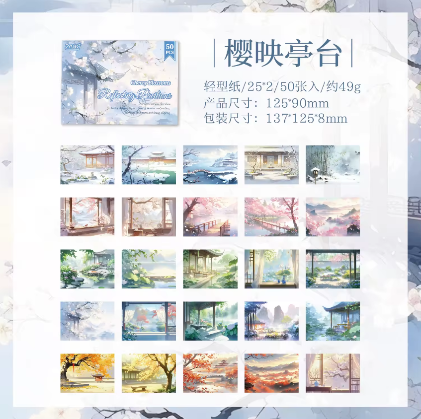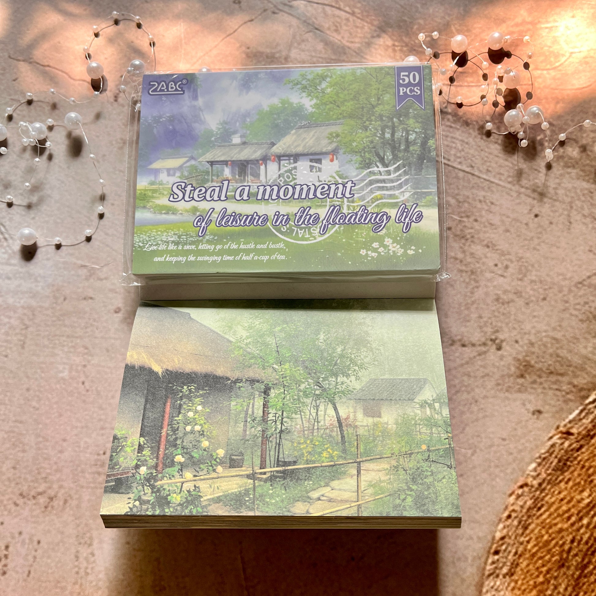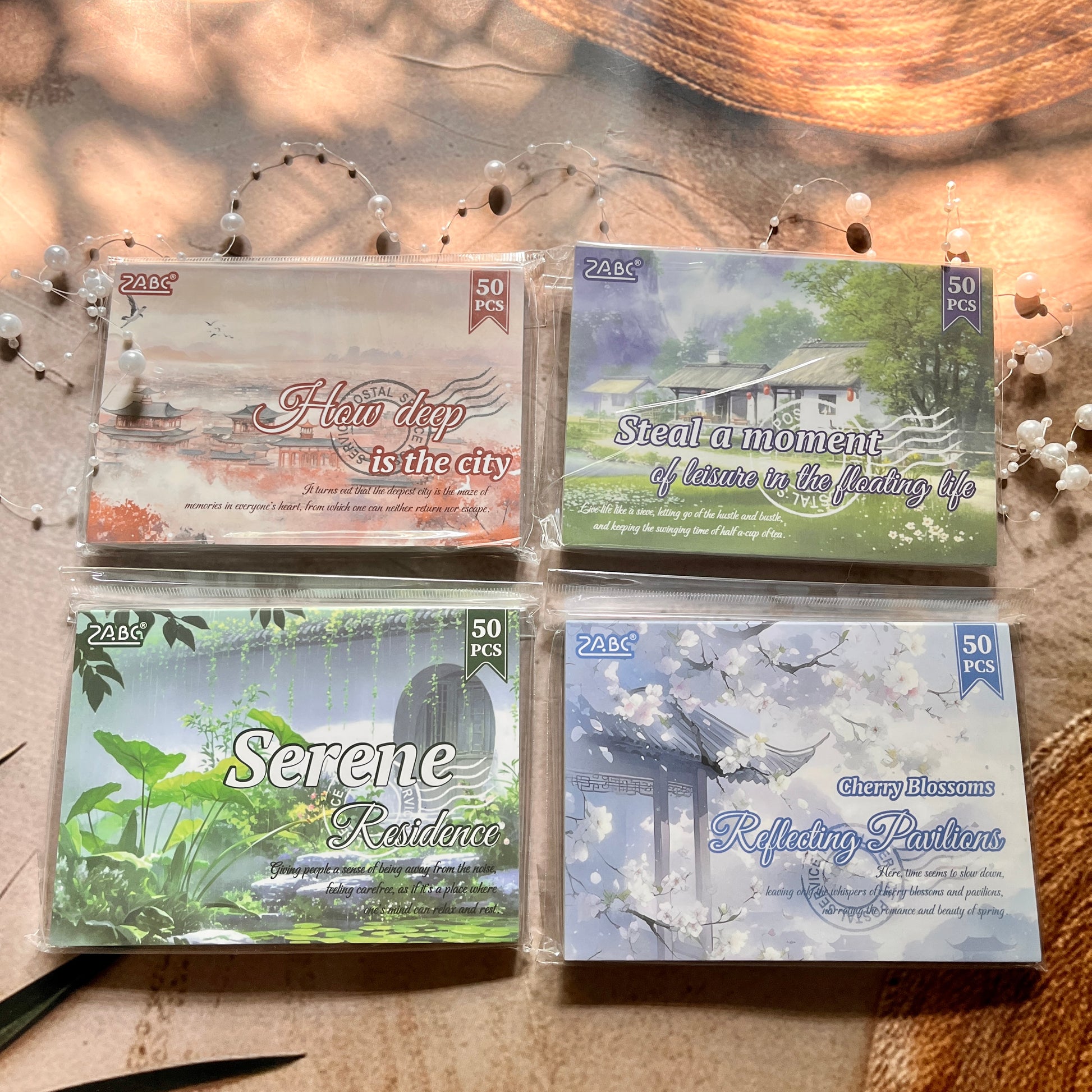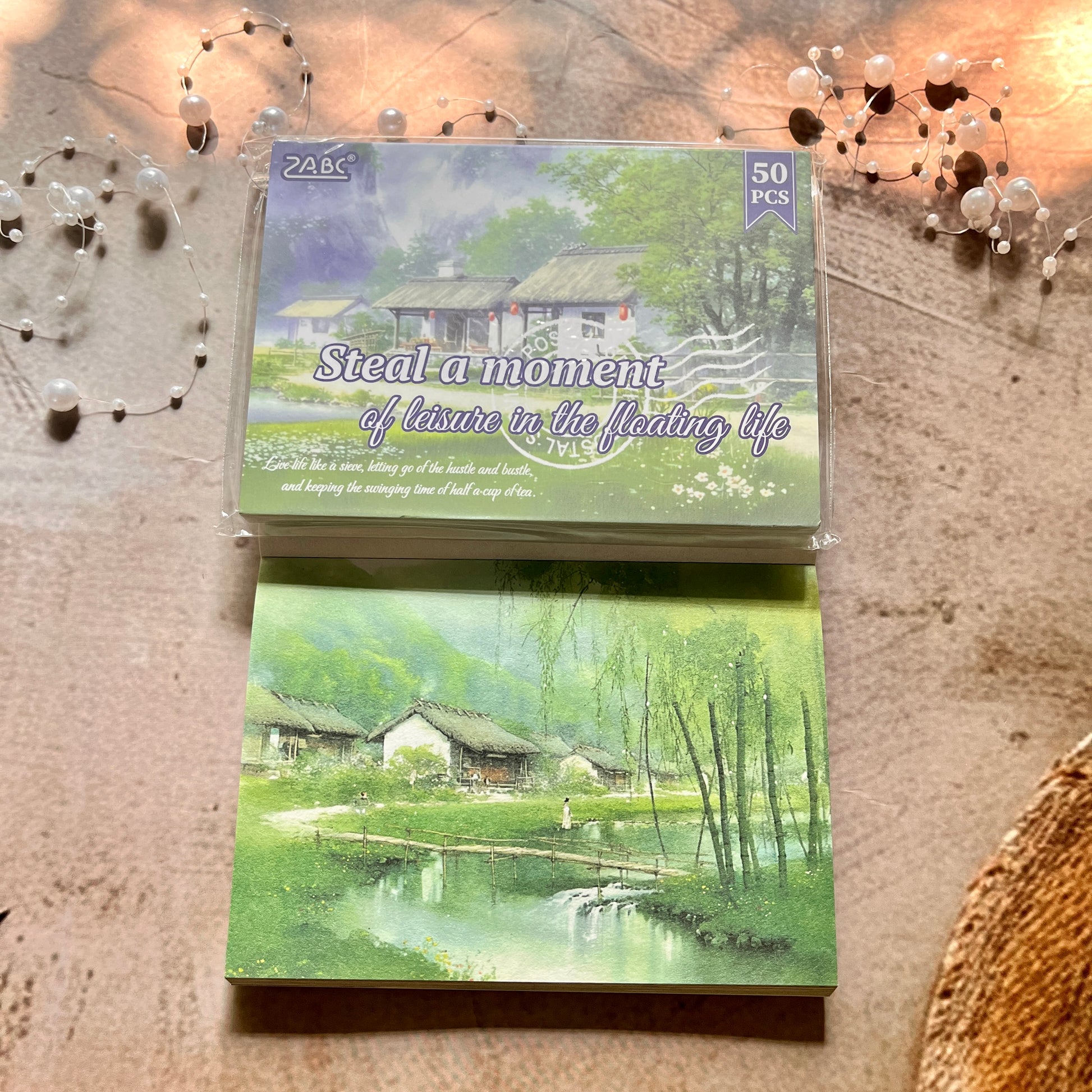 50 Sheets Four Seasons Scenic Notes Non Adhesive Retro Craft Paper Material