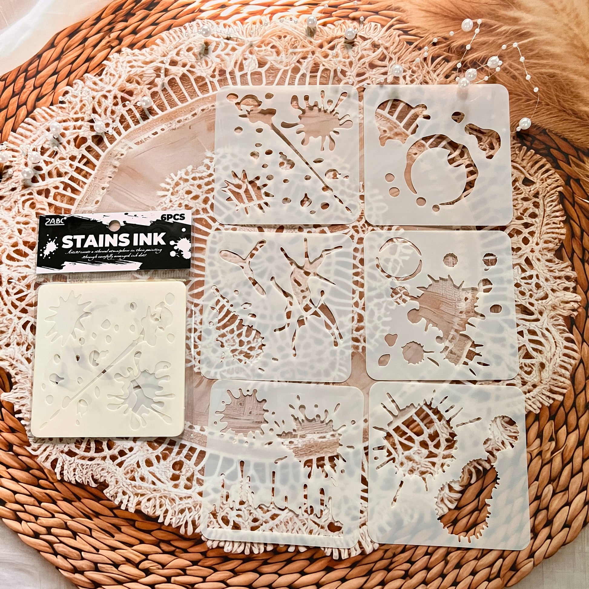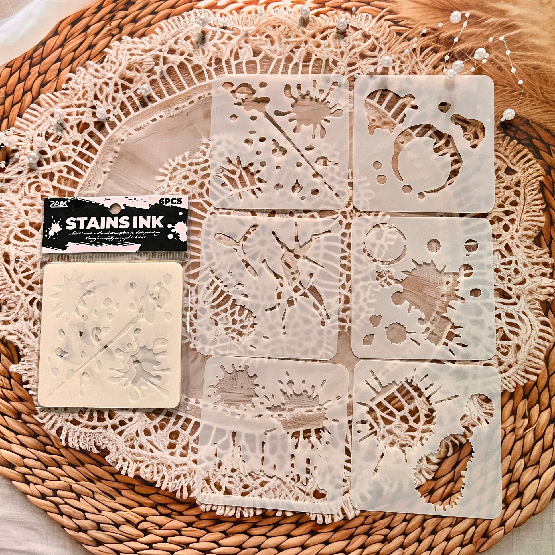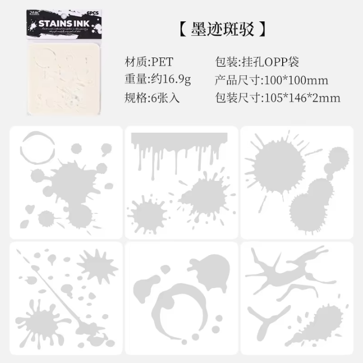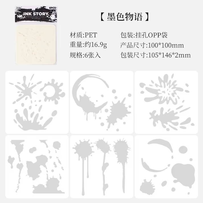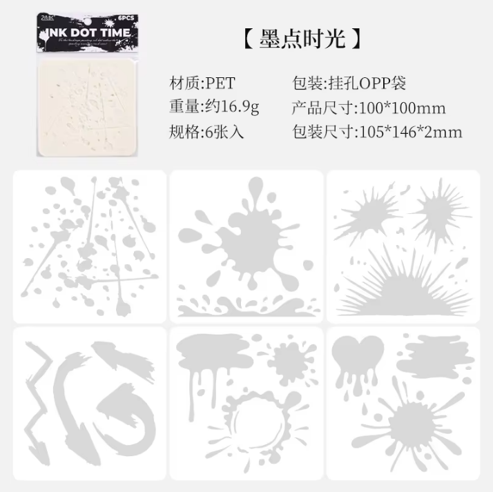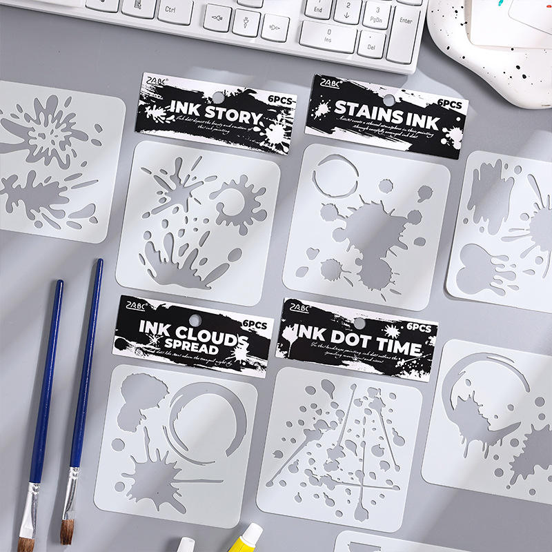 6pcs Ink Drop PET Painting Stencil Set
