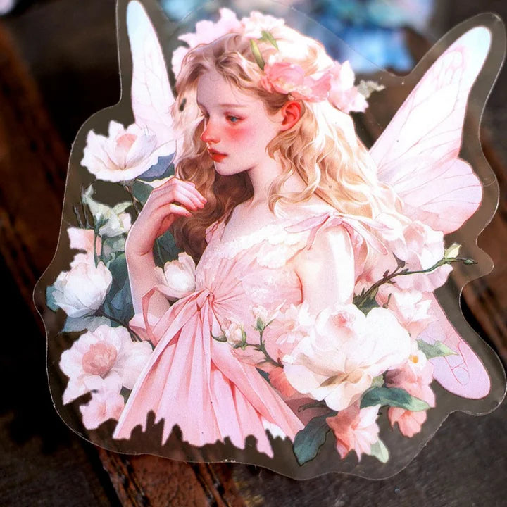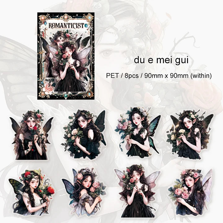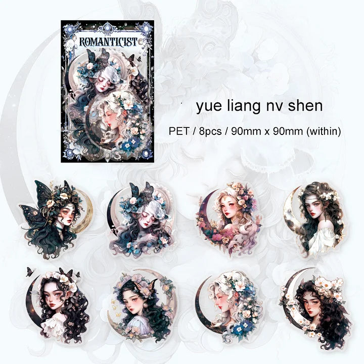 8 Pcs Romantic Believer Series Vintage Goddess Character Flower PET Sticker