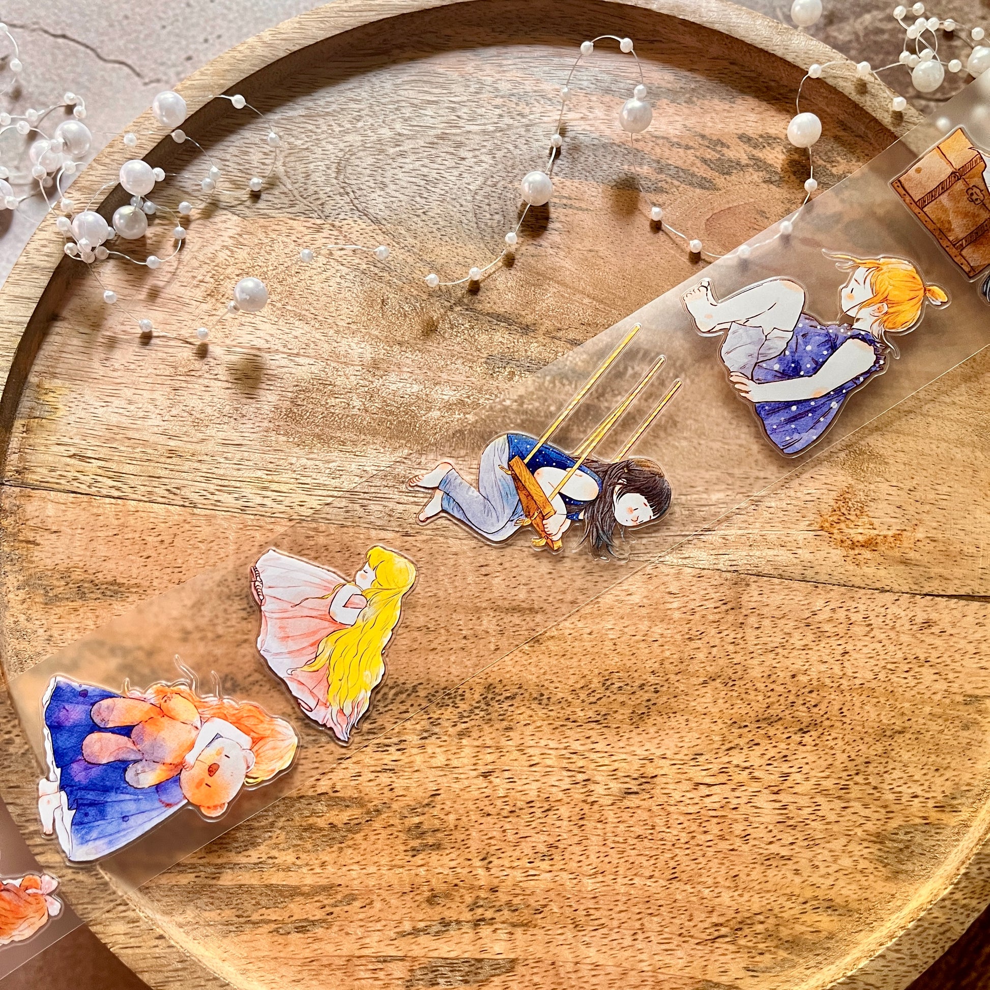 Ding Ding Girl Seahorse Forest Series childhood fun Die-Cut Frosted Sample Tape