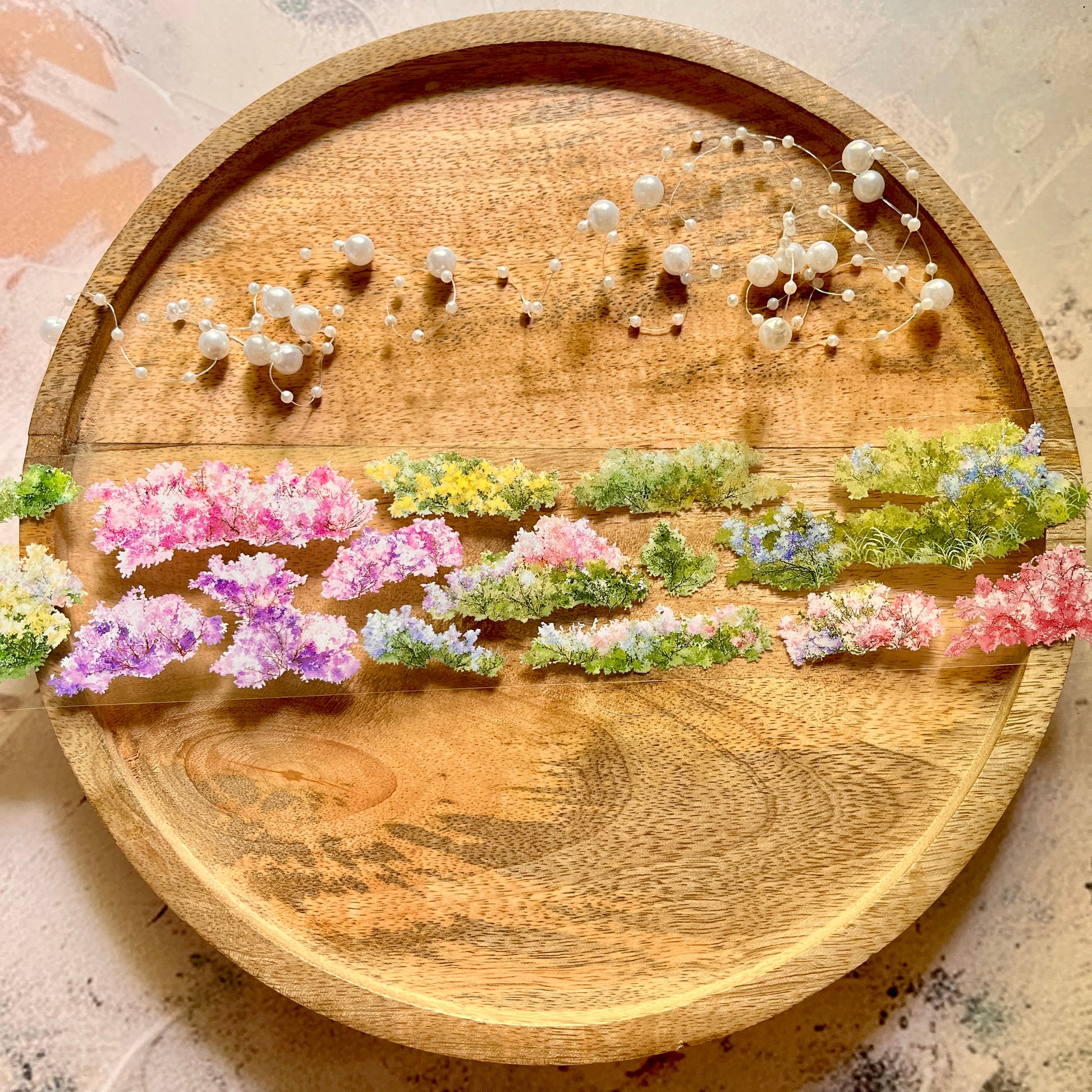 Elevate your journaling practice with this refined decorative tape, featuring delicate green and pink botanical motifs. Perfect for personalizing your pages, this versatile adhesive tape brings a touch of natural elegance to every entry. The small bush patterns create a sophisticated aesthetic that complements both minimalist and ornate journal styles. Ideal for framing thoughts, highlighting passages, or adding visual interest to your creative writing. A subtle yet impactful way to express your artistic sensibility through journaling.